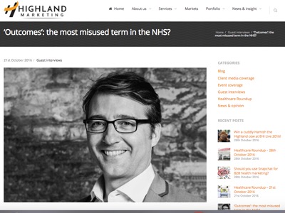 Highland Marketing hosted a guest interview with OBH in October. Here, OBH CEO – Rupert argues that although the need for better outcomes has become widely accepted in the NHS, we need to disentangle outputs from outcomes.