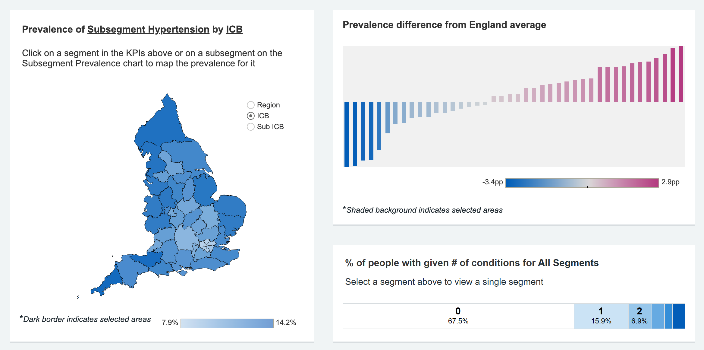 Patient cohorts are grouped into segments based on common healthcare needs and common socio-demographics such as age, gender, ethnicity and Index of Multiple Deprivation.