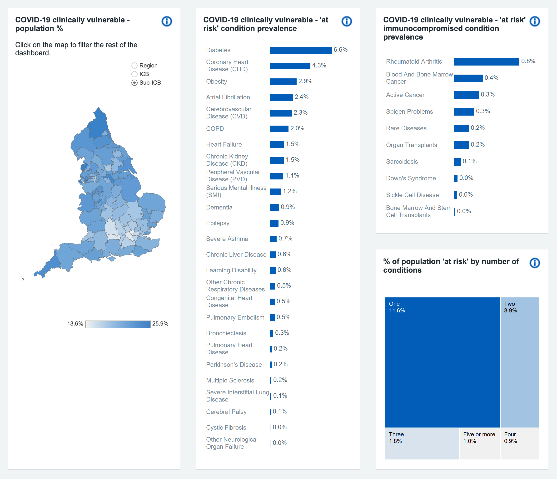 Data can be viewed through several lenses; from national, regional, and local level up to ICB, Sub-ICBs.