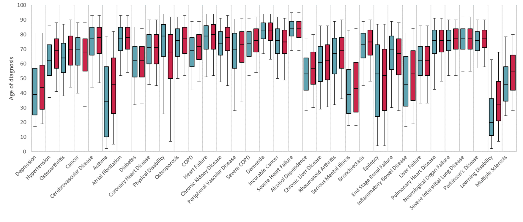 The datasets show similar patterns for many conditions, particularly in well-documented areas like diabetes and mental health, demonstrating the robust nature of the National Segmentation Dataset. Where differences exist, this likely reflects the different ways conditions are coded and captured across care settings.